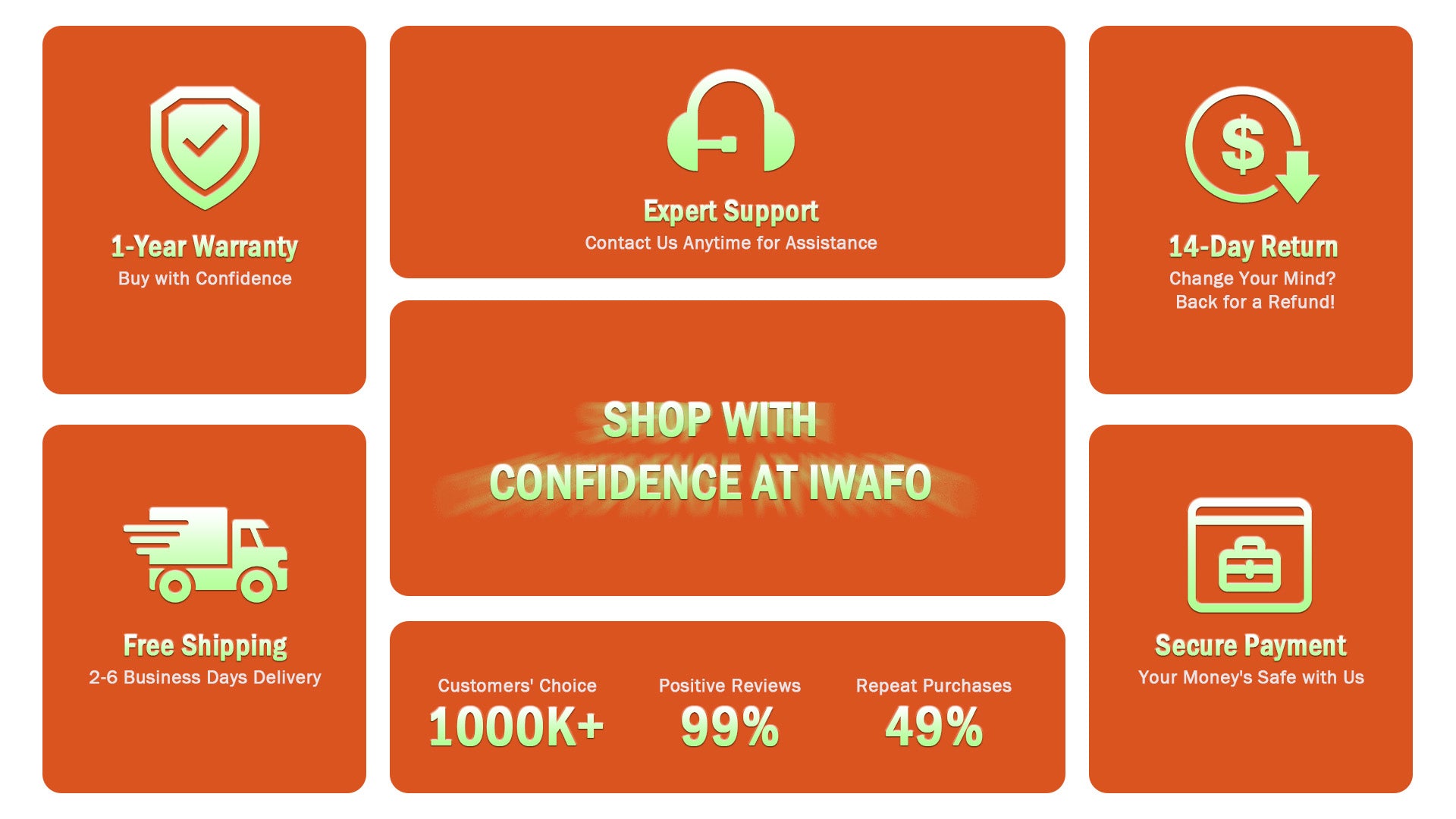 Safety is our priority. IWAFO products feature dual braking systems, integrated LED lighting, and anti-slip footboards, all meeting rigorous international safety standards. Plus, our dedicated customer support ensures you’re covered even after purchase.